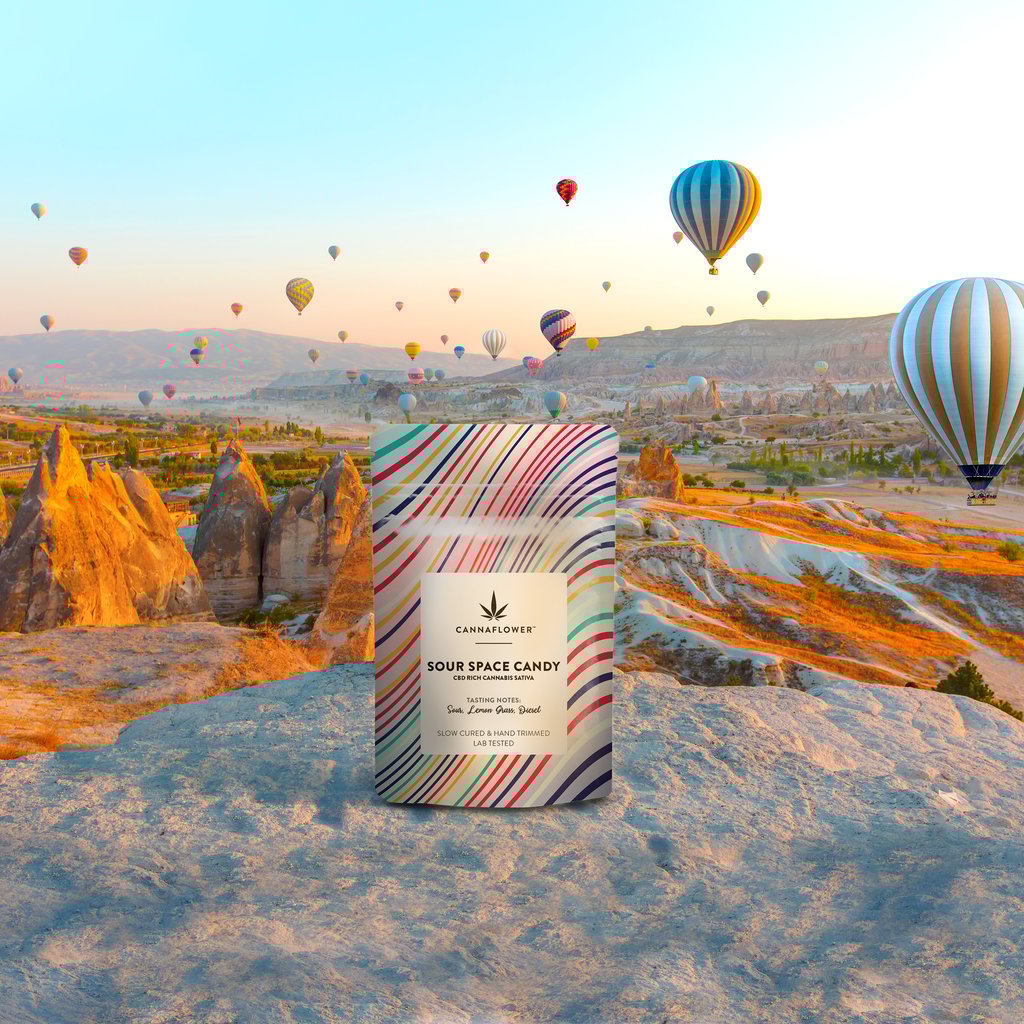 Sour Space Candy is included in the Cannaflower CBD Daytime Collection along with Lifter and White CBG. All of these strains offer the use an enlivened calm without any risk of sinking into your couch or becoming too subdued.